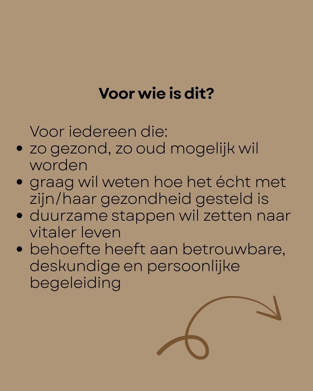 Wil jij meer weten over jouw gezondheid? Met onze gezondheidsscreening bieden wij advies gebaseerd op wetenschappelijk onderzoek. Laat ons je begeleiden op weg naar een gezondere en bewustere levensstijl! 🌿